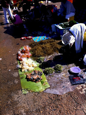 The next day I took a walk to the waterfront, which was basically across the street from the hotel. The esplanade was filled with open air booths of merchants selling fresh fish, shells, peppers, seaweed, conch, bananas, colorful fruits and jewelry.